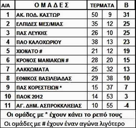ΑΠΟΤΕΛΕΣΜΑΤΑ – ΒΑΘΜΟΛΟΓΙΑ: 12ης ΑΓΩΝΙΣΤΙΚΗΣ Β΄ ΚΑΤΗΓΟΡΙΑΣ