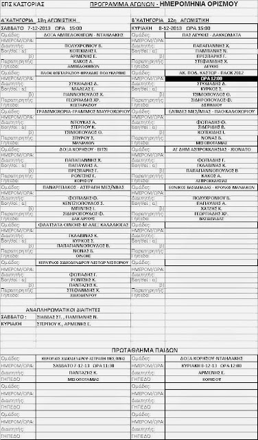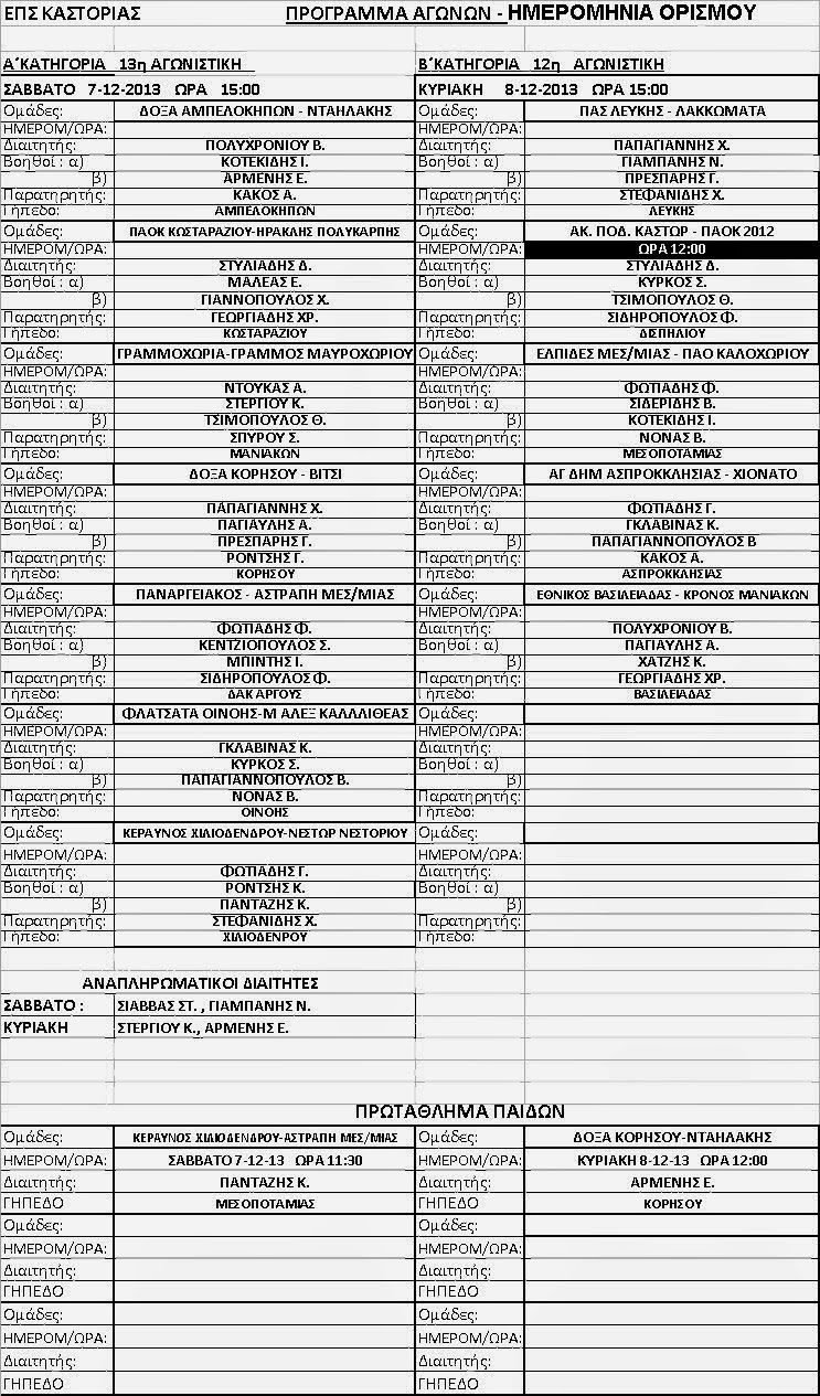 τους ορισμούς των διαιτητών και βοηθών της 13ης Αγωνιστικής Α΄ κατηγορίας και 12ης της Β΄ κατηγορίας: