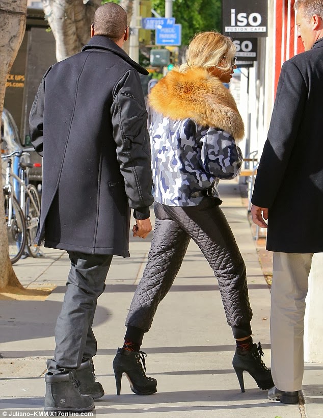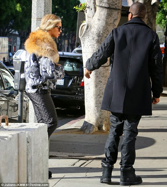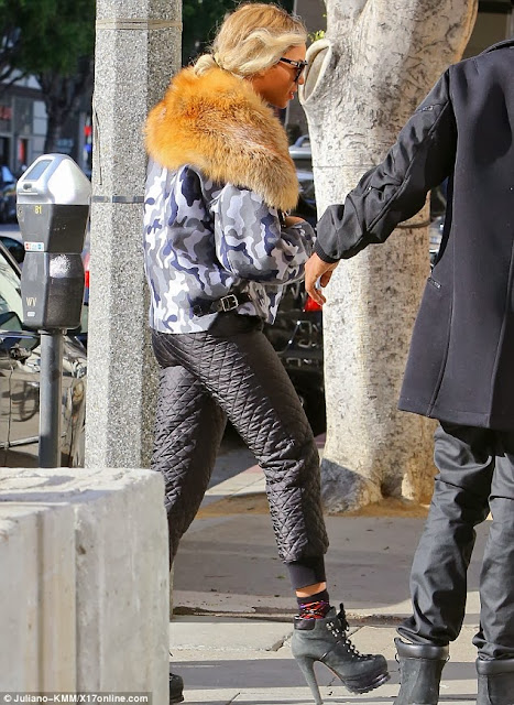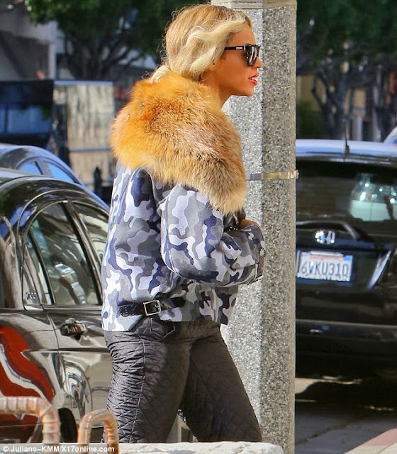Με τον σύζυγό της Jay Z  ενώ την συνοδεύει  στο Λος Άντζελες, την Πέμπτη για μεσημεριανό γεύμα η Beyonce φόρεσε μπουφάν με γούνινο γιακά αλεπού.