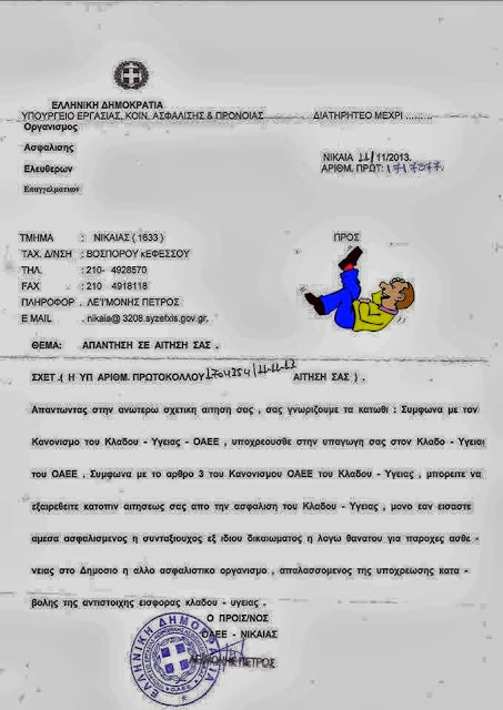 Ε, δεν παίζονται με τίποτε αυτοί οι γραφειοκράτες του Δημοσίου. Ιδίως αυτοί του ΟΑΕΕ. Εδώ ο κόσμος χάνεται, άνθρωποι πεθαίνουν από την θανάσιμη ανυπαρξία αυτού του άτιμου (μη) ασφαλιστικού φορέα κι αυτοί τολμάνε ακόμη να απαντάνε με τέτοιες αθλιότητες.