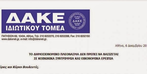 Σε «αντάρτικο» καλεί του βουλευτές της Νέας Δημοκρατίας η ΔΑΚΕ Ιδιωτικού τομέα, η συνδικαλιστική παράταξη που πρόσκειται στη ΝΔ, καθώς σε ανακοίνωσή της καλεί τους βουλευτές να καταψηφίσουν τον προϋπολογισμό