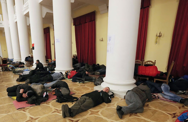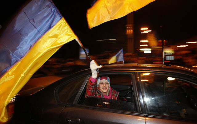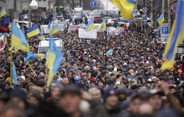 Ουκρανοί ηγέτες της αντιπολίτευσης κάλεσαν την Κυριακή για τον Πρόεδρο Βίκτορ Γιανούκοβιτς και την κυβέρνησή του να παραιτηθούν σε ένα συλλαλητήριο περίπου 350.000 άτομα, τη μεγαλύτερη διαμαρτυρία στην πρωτεύουσα του Κιέβου από την «Πορτοκαλί Επανάσταση» του πριν από εννέα χρόνια. (Reuters)