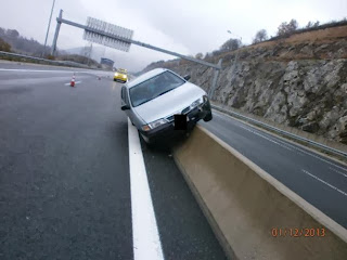 Εγνατία Οδός λίγο μετά την έξοδο για Σιάτιστα πριν λίγο. Τυχερός στάθηκε ο οδηγός του εν λόγου οχήματος, όταν ένα όχημα κάτω από άγνωστες συνθήκες τον χτύπησε στο πίσω