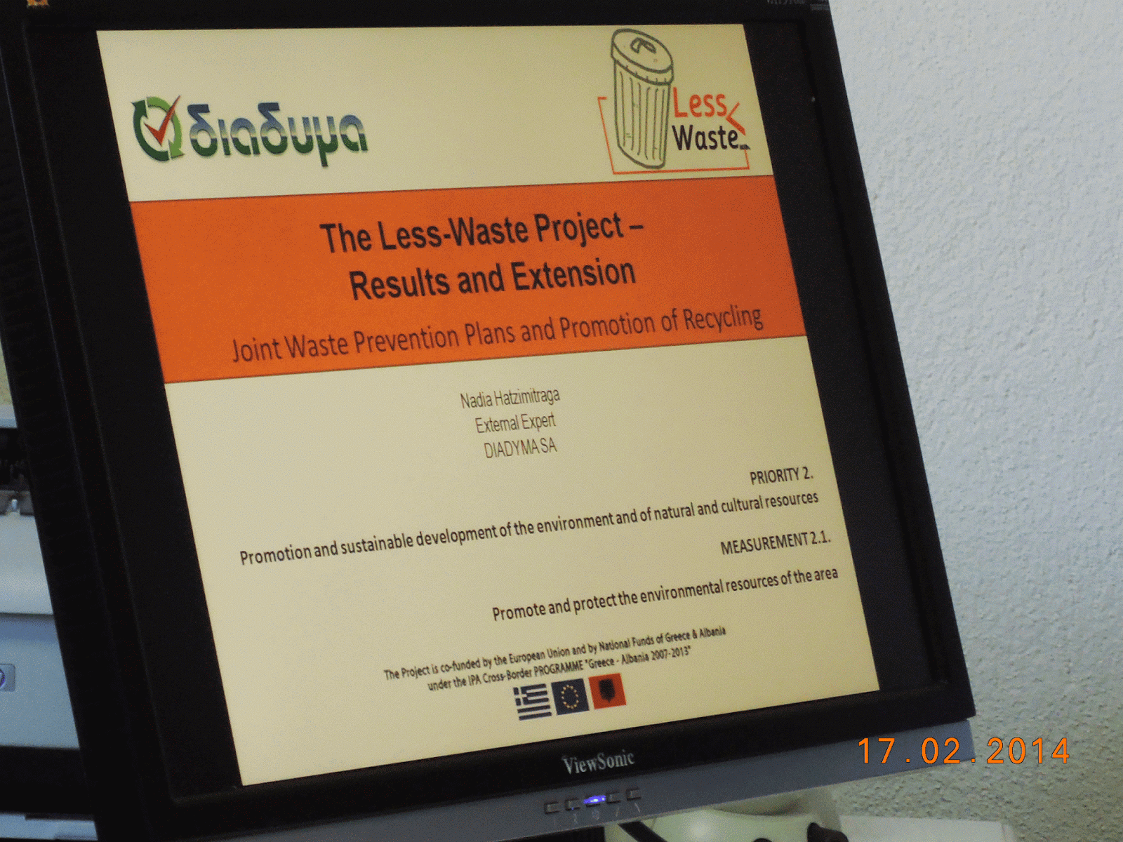 Το πρόγραμμα LESS WASTE αποσκοπεί να συμβάλλει σημαντικά στην πρόληψη παραγωγής των απορριμμάτων και στην προώθηση της ανακύκλωσης και οικιακής κομποστοποίησης στη διασυνοριακή περιοχή Ελλάδας-Αλβανίας. Άμεσοι δικαιούχοι του προγράμματος για την ελληνική πλευρά είναι οι Δήμοι Πρεσπών και Νεστορίου στους οποίους έχουν ήδη πραγματοποιηθεί δράσεις πρόληψης παραγωγής απορριμμάτων και ανακύκλωσης, όπως διανομή κάδων κομποστοποίησης, ενημέρωση των κατοίκων και εκπαίδευση των υπαλλήλων καθαριότητας. Οι προγραμματισμένες δράσεις για το επόμενο διάστημα εστιάζουν σε εκστρατείες ενημέρωσης στα σχολεία της περιοχής.