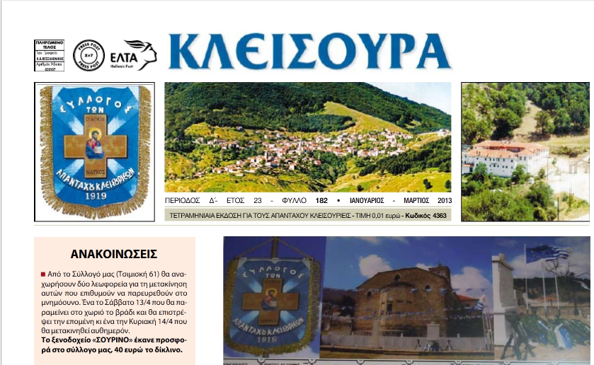 Η εφημερίδα και η σημαία του Συλλόγου των απανταχού Κλεισουριέων ¨΄Αγιος Μάρκος
