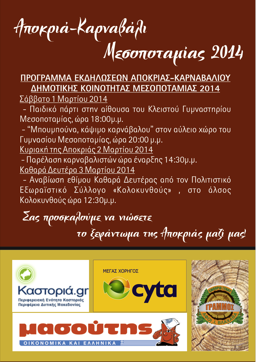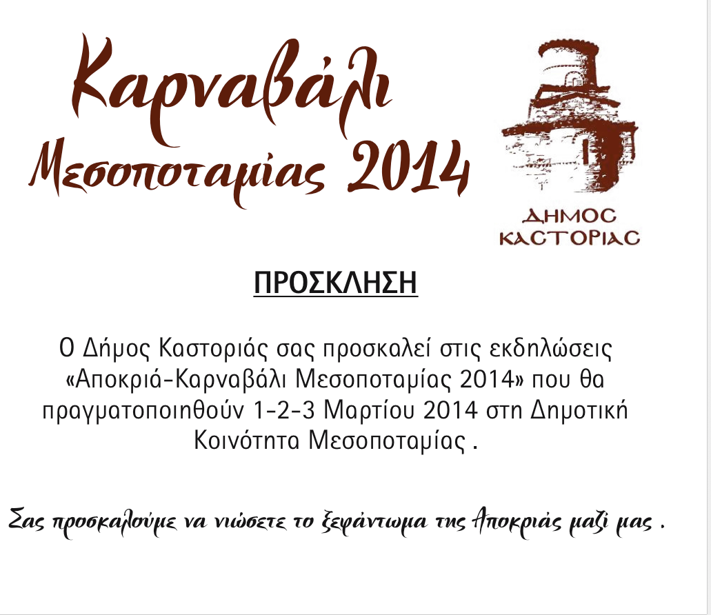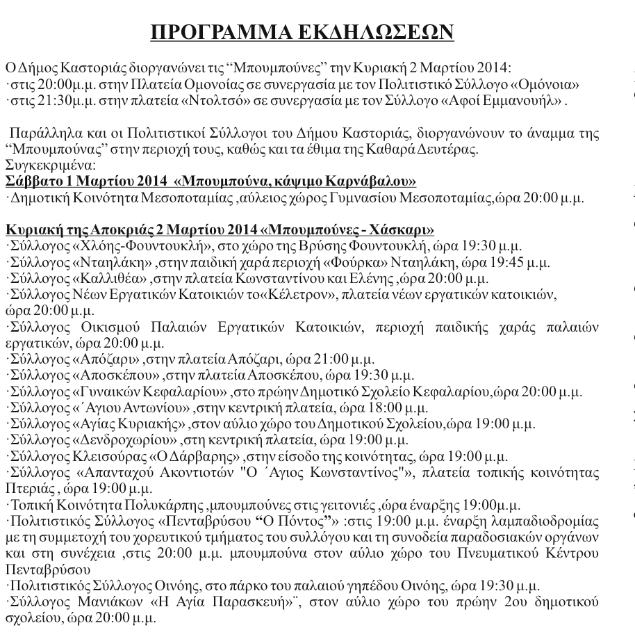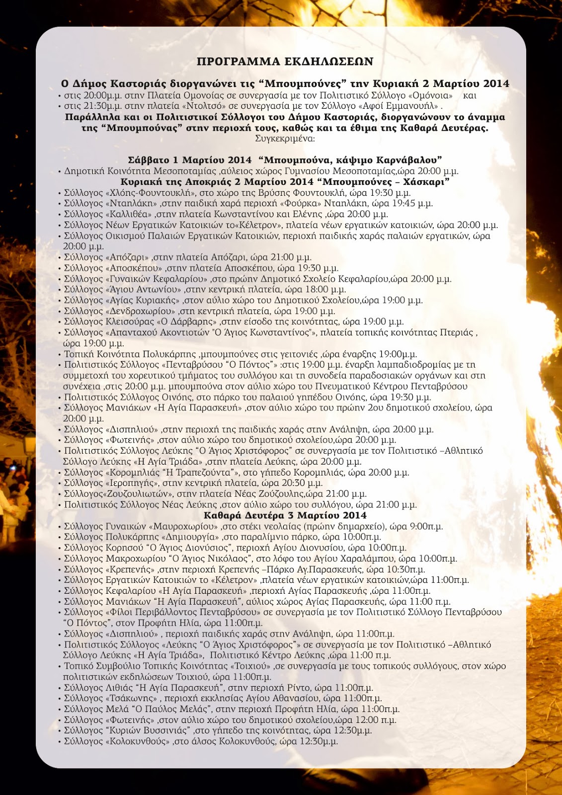 ΑΠΟΚΡΙΕΣ ΣΤΗΝ ΚΑΣΤΟΡΙΑ – ΠΡΟΓΡΑΜΜΑ ΠΡΟΣΚΛΗΣΕΙΣ
