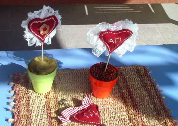 Τα χειροποίητα γλαστράκια που έφτιαξαν για τη σημερινή ημέρα για να τα μοιράσουν μεταξύ τους ,υπέροχα! Οι κόκκινες καρδιές με το μήνυμα που αναγράφουν στο πίσω μέρος τους μας γοητεύουν.