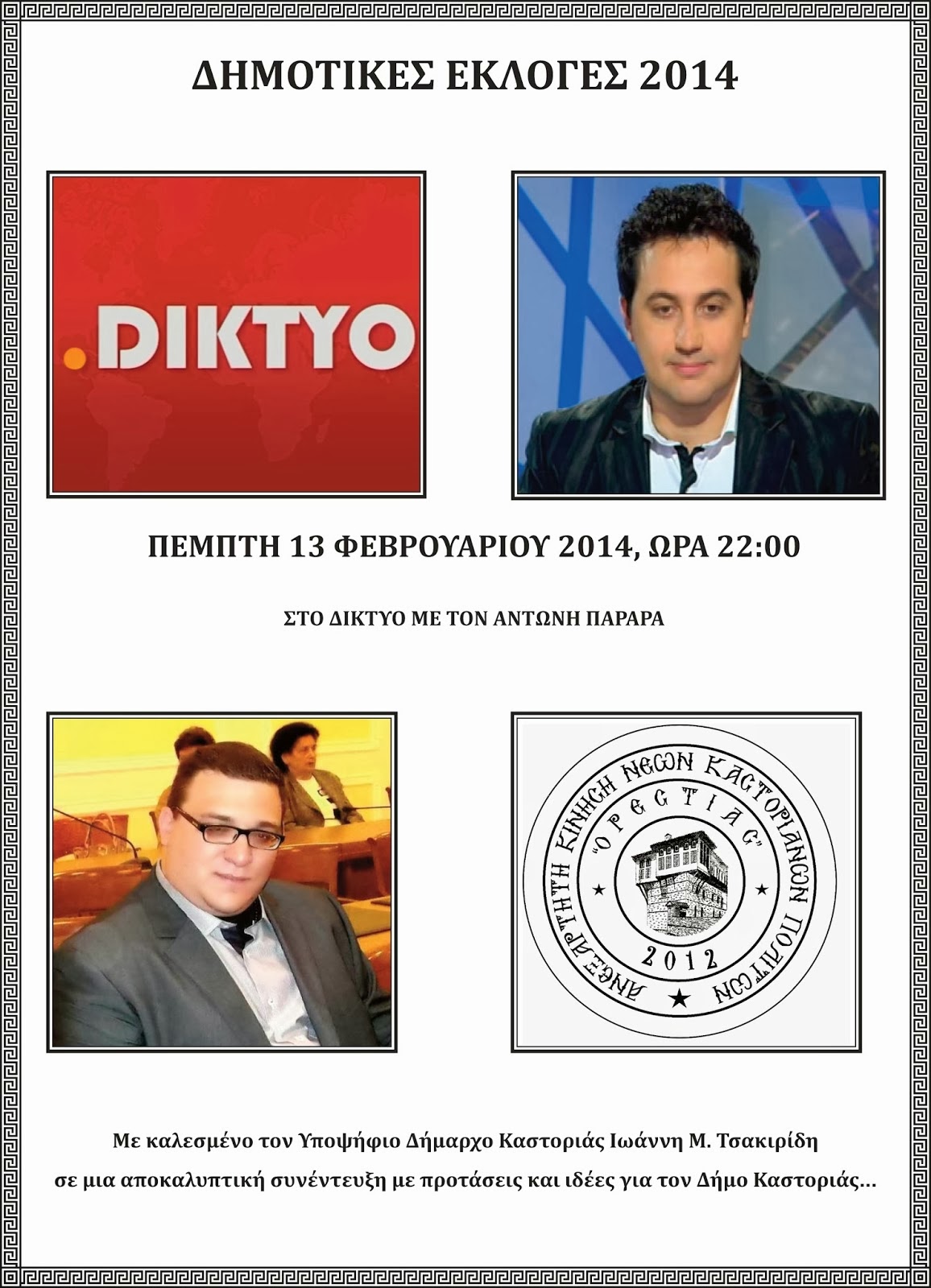 Τηλεοπτική Εκπομπή στο Δίκτυο με τον Υποψήφιο Δήμαρχο Καστοριάς Ιωάννη Τσακιρίδη και τον Αντώνη Παραρά