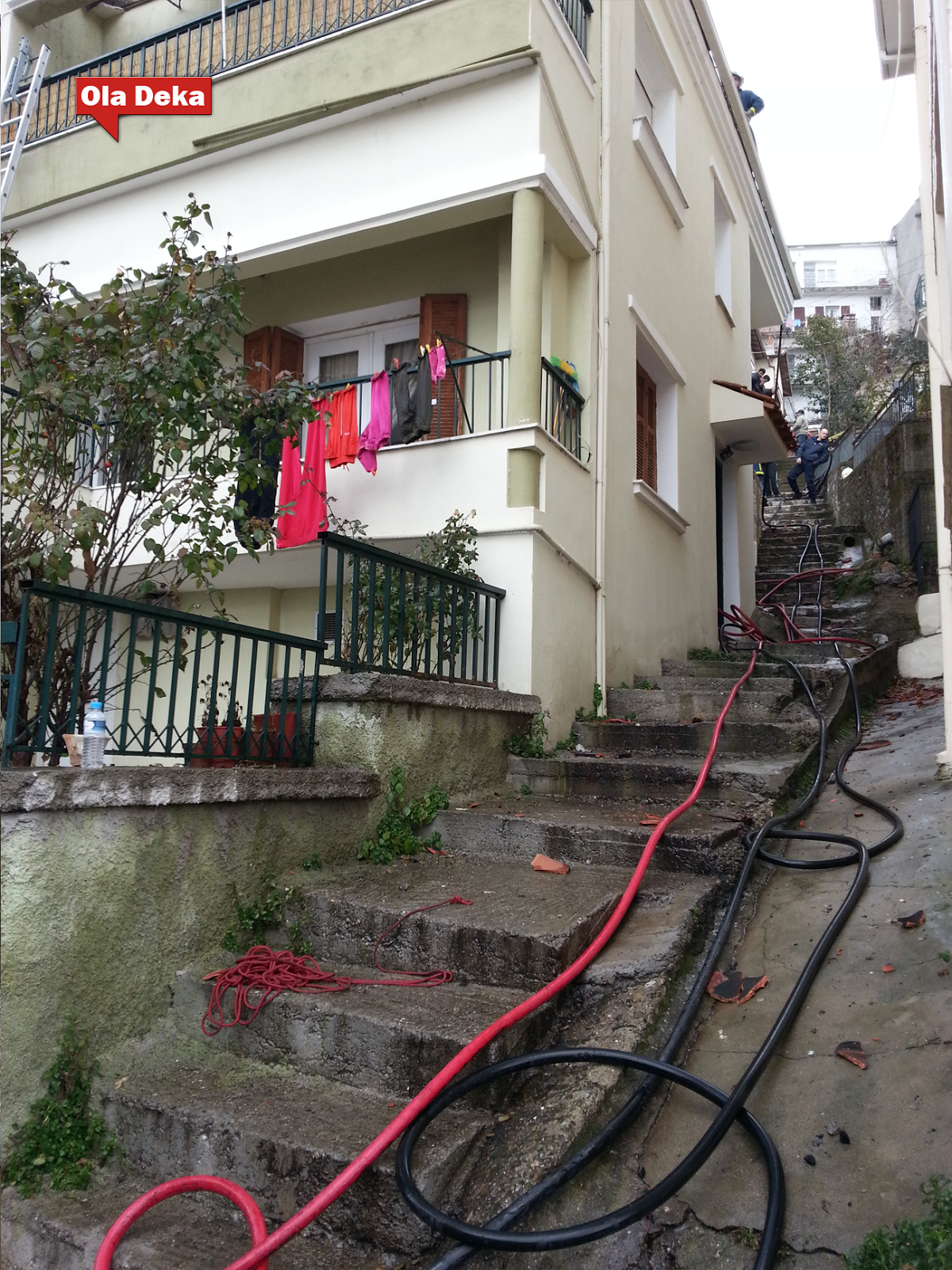 Έντρομα τα μέλη της οικογένειας (σύμφωνα με πληροφορίες η γυναίκα είναι έγκυος) πετάχτηκαν έξω και τουλάχιστον δεν θρηνήσαμε θύματα.