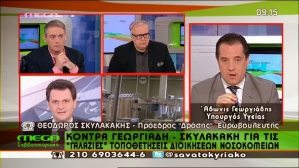 Μεγάλη κόντρα ξέσπασε στον τηλεοπτικό “αέρα” μεταξύ του Άδωνι Γεωργιάδη και του Θεόδωρου Σκυλακάκη, με αφορμή τους διορισμούς των διοικήσεων στα νοσοκομεία.