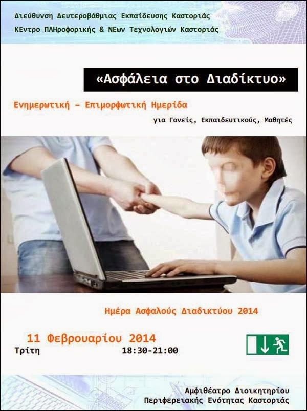 Το ΚΕντρο ΠΛΗροφορικής και ΝΕων Τεχνολογιών Καστοριάς διοργανώνει Ενημερωτική – Επιμορφωτική Ημερίδα για Γονείς, Εκπαιδευτικούς, Μαθητές