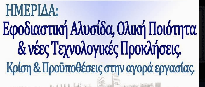 «Εφοδιαστική Αλυσίδα, Ολική Ποιότητα & νέες Τεχνολογικές Προκλήσεις – Κρίση & Προϋποθέσεις στην αγορά εργασίας».