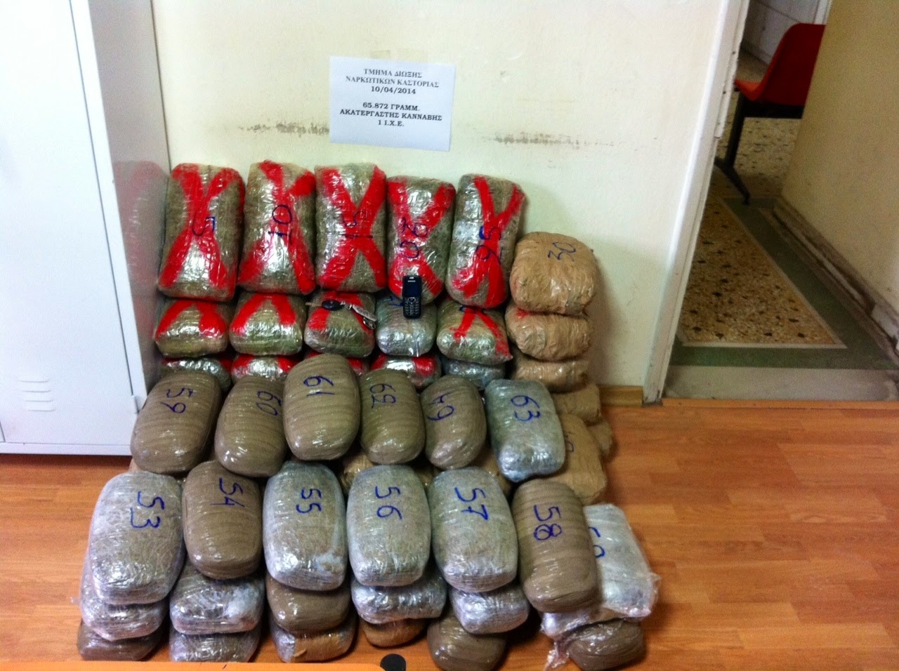 κάνναβη, συνολικού βάρους 65,872 κιλά,