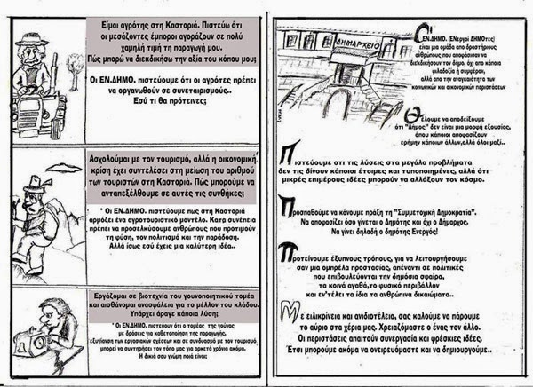 Το προεκλογικό φυλλάδιο παρουσίασαν οι“ΕΝ. ΔΗΜΟ. Ενεργοί Δημότες Καστοριάς” και μιας και δεν έχουν χρήματα για την προεκλογική εκστρατεία, με ανακοίνωσή τους στο Facebook παρακαλούν τους συμπολίτες να βοηθήσουν: