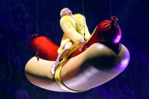 ΔΕΝ ΜΑΣΑΕΙ ΜΙΑ Η MILEY CYRUS: ΚΑΒΑΛΑΕΙ HOT DOG ΚΑΙ ΦΟΡΑΕΙ ΚΙΤΡΙΝΗ ΓΟΥΝΑ!