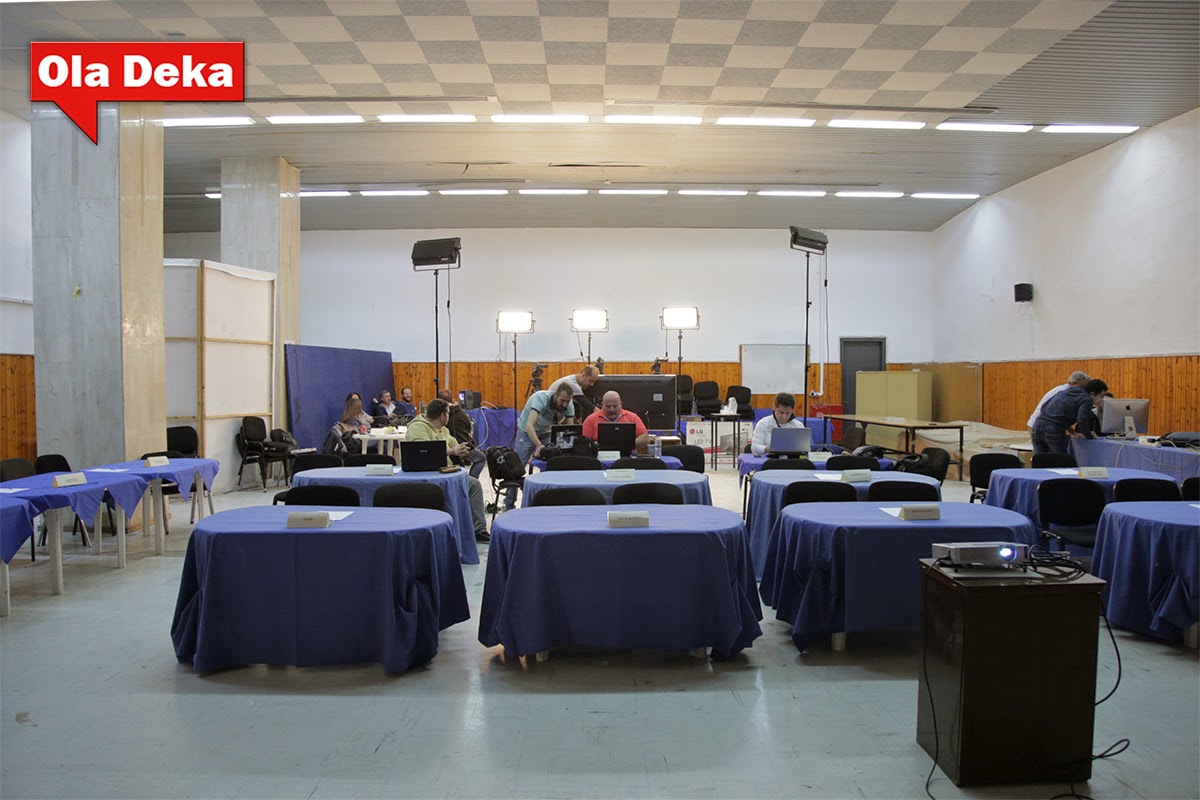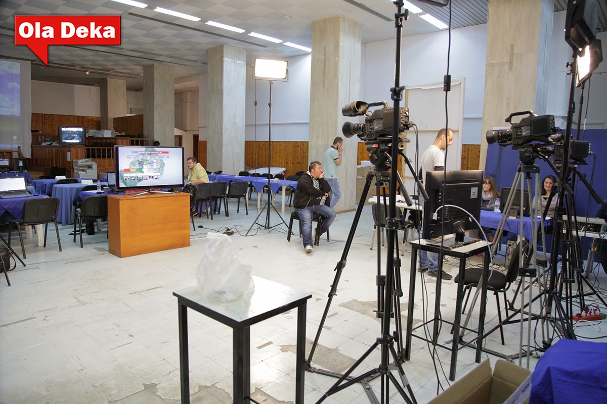 Το αμφιθέατρο της νομαρχίας ετοιμάζεται πυρετωδώς για τη μετάδοση των αποτελεσμάτων της εκλογικής αναμέτρησης. Τηλεοπτικοί σταθμοί, ραδιόφωνα, εφημερίδες και ιντερνετικοί εκπρόσωποι