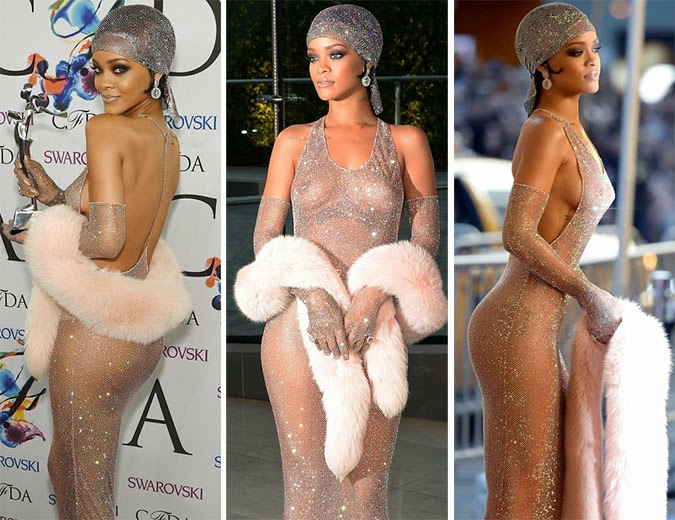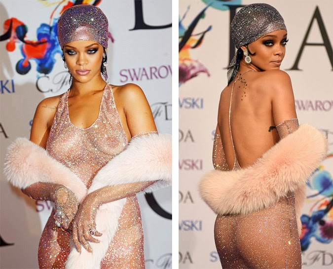 Θυμόσαστε όλες τις περσόνες που τα πετάνε στις διαφημιστικές καμπάνιες της PETA λέγοντας «καλύτερα γυμνή, παρά με γούνα». Η Rihanna τους… τρέχει φορώντας σε μεγάλη εκδήλωση βράβευσης ως Fashion Icon (CFDA Fashion Awards) φορώντας σχεδόν μόνο μία