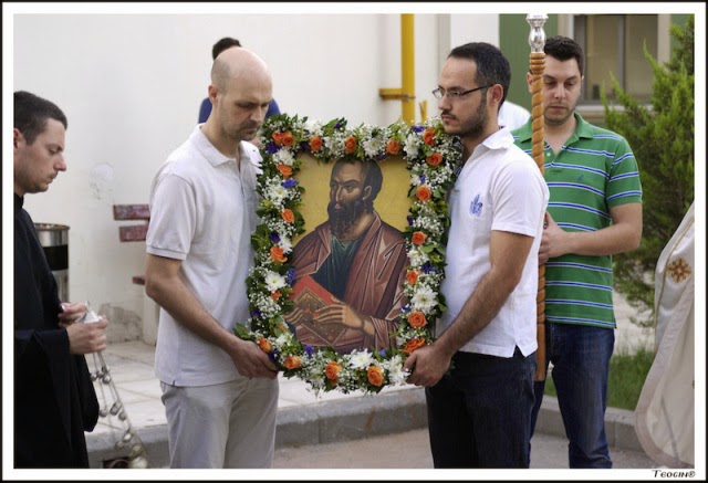 Στο αναλόγιο του παρεκκλησίου έψαλε ο διακεκριμένος Ιεροψάλτη κ. Πετρόπουλος Αντώνιος που με τη χορωδία του απέδωσαν σε άριστο Βυζαντινό μέλος τα τροπάρια της εορτής. Εν συνεχεία, ακολούθησε περιφορά της εικόνας του Αποστόλου Παύλου εντός του προαύλιο χώρου του Νοσοκομείου που βρισκόταν μάλιστα την ημέρα αυτή σε γενική εφημερία.