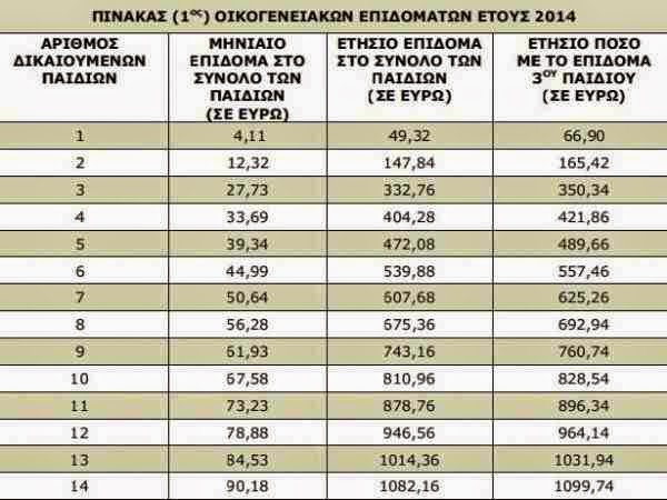 – Δείτε τον πίνακα με τα οικογενειακά επιδόματα