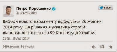 O Petro Porochenko ανακοίνωσε σήμερα Δευτέρα στο Twitter του την πρόωρη διάλυση του Ουκρανικού Κοινοβουλίου. “Αποφάσισα να βάλω τέλος πρόωρα στην αρχή του Κοινοβουλίου ” έγραψε στον λογαριασμό του στο Twitter.