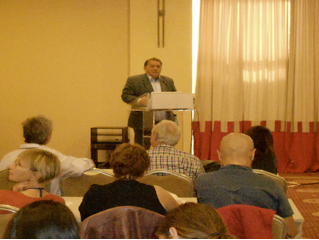 Τόνισε επίσης ότι, το παρόν συνέδριο εργασίας ενδιαφέρει άμεσα το Δήμο μας γιατί η λίμνη της Καστοριάς ως ευτροφική λίμνη παρουσιάζει μεγάλες ποσότητες φυτοπλαγκτού, ιδίως τους θερινούς μήνες.