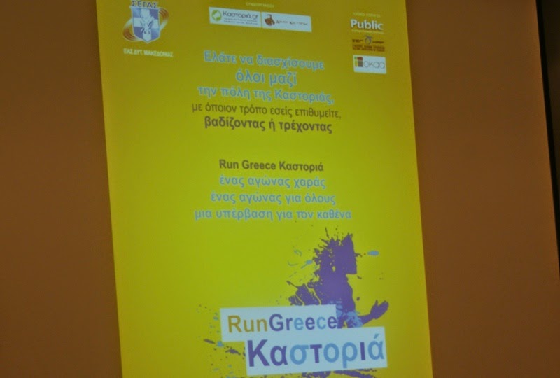 Σήμερα, ο Αντιπεριφερειάρχης Καστοριάς Σωτήρης Αδαμόπουλος με τους συνδιοργανωτές της εκδήλωσης, συμμετείχε σε κοινή συνέντευξη τύπου στο Δημαρχείο Καστοριάς, σημειώνοντας σε δηλώσεις του: « Το Run Greece που γίνεται για δεύτερη φορά στην πόλη μας, ελπίζουμε να γίνει θεσμός. Τέτοιες εκδηλώσεις προβάλλουν την περιοχή μας και γενικά την Περιφέρεια Δυτικής Μακεδονίας. Ελπίζουμε να αρχίσουν να γίνονται κι άλλες τέτοιες δράσεις». Στη συνέχεια ευχαρίστησε στο πρόσωπο του ΣΕΓΑΣ τον συμπολίτη μας κ. Θανάση Ράπτη, η βοήθεια του οποίου είναι καθοριστική στη διεξαγωγή των αγώνων, τους εθελοντές και τον Δήμο Καστοριάς, ενώ παράλληλα προέτρεψε τον κόσμο να συμμετέχει στην εκδήλωση.
