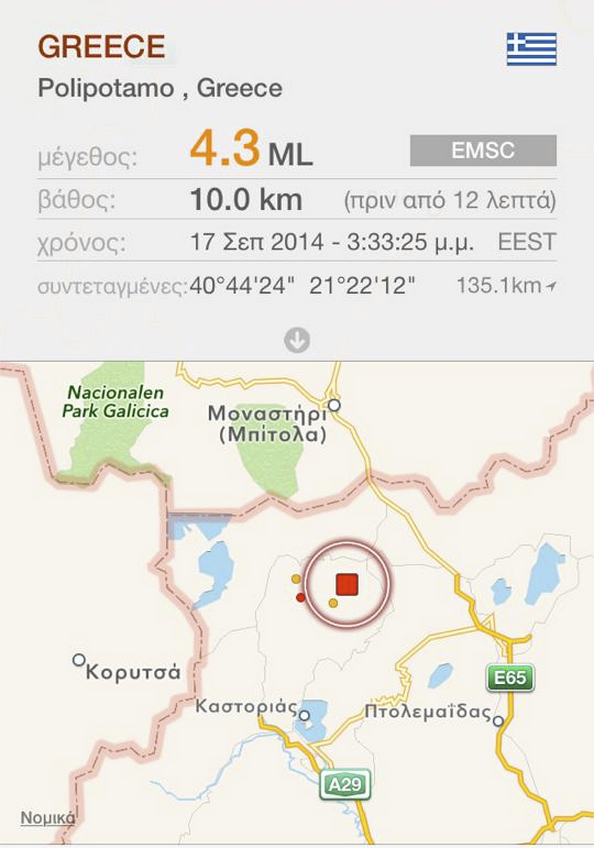 ΣΕΙΣΜΟΣ ! 4.2 R Με επίκεντρο στο Πολυπόταμο Φλώρινας
