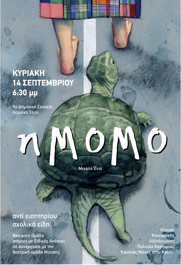 Η κίνηση Κοινωνικής Αλληλεγγύης στην προσπάθεια να ξεκινήσει η χρονιά χαρούμενα για όλους συνεργάστηκε με την θεατρική ομάδα ‘Μύηση’ και ομάδα ατόμων με Ειδικές Ανάγκες για να παρουσιάζουν την θεατρική παράσταση Μόμο του Μικαελ Έντε