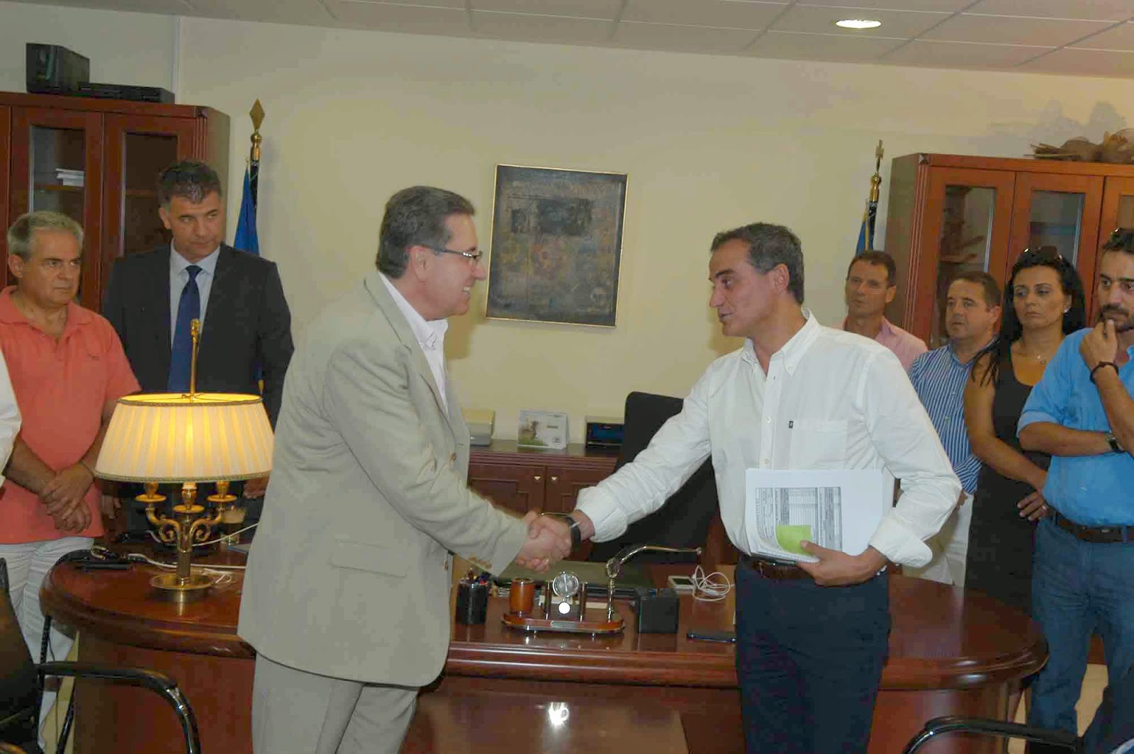 Ο κ. Σαββόπουλος υποδέχτηκε στη συνέχεια στο γραφείο του την νέα Περιφερειακή Αρχή και παρέδωσε οικονομικά στοιχεία πεπραγμένων της προηγούμενης αυτοδιοικητικής περιόδου.