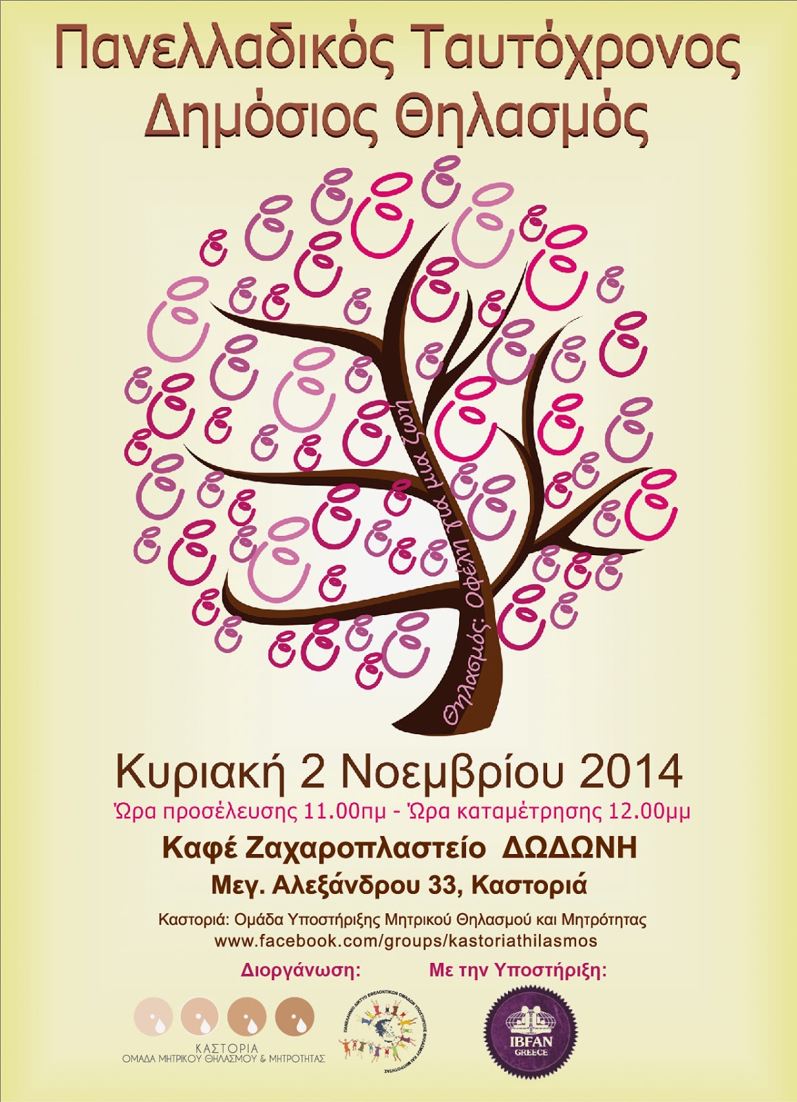 και σας προσκαλεί την Κυριακή 2 Νοεμβρίου 2014 και ώρα προσέλευσης 11:00 π.μ., στο Καφέ ΔΩΔΩΝΗ Μεγ. Αλεξάνδρου 33 , σε μια εκδήλωση γιορτή για τον μητρικό θηλασμό!