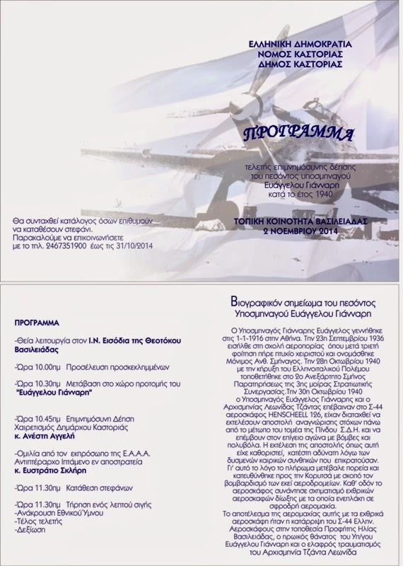 Βασιλειάδα: Εκδηλώσεις στη μνήμη του πρώτου πεσόντα Έλληνα Αεροπόρου Υποσμηναγού Ευάγγελου Γιάνναρη