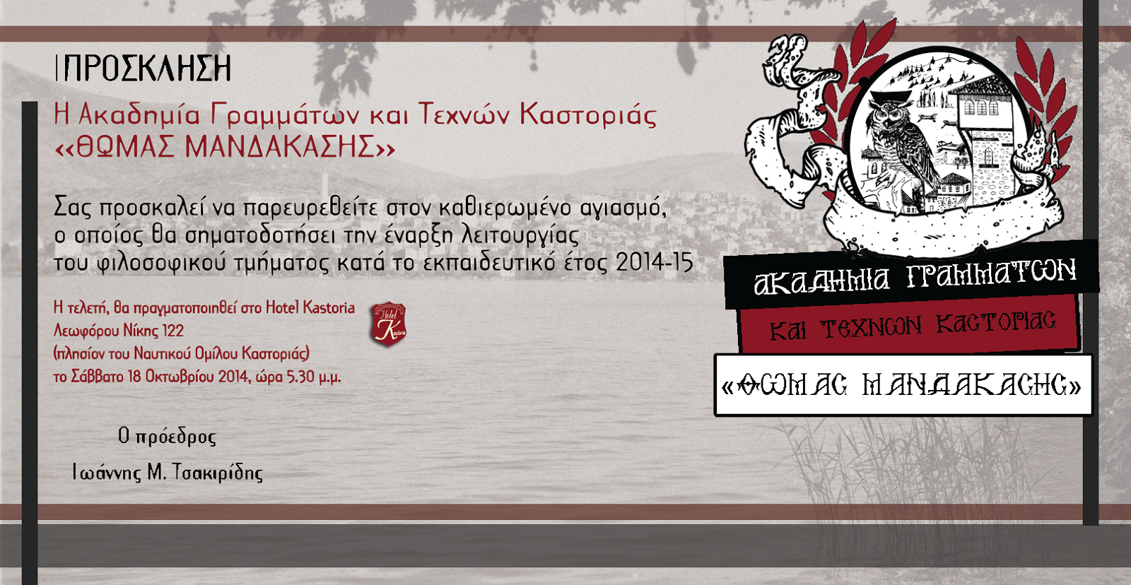 Τέλεση Αγιασμού και έναρξη λειτουργίας του Φιλοσοφικού τμήματος της Ακαδημίας Γραμμάτων και Τεχνών Καστοριάς «ΘΩΜΑΣ ΜΑΝΔΑΚΑΣΗΣ»”