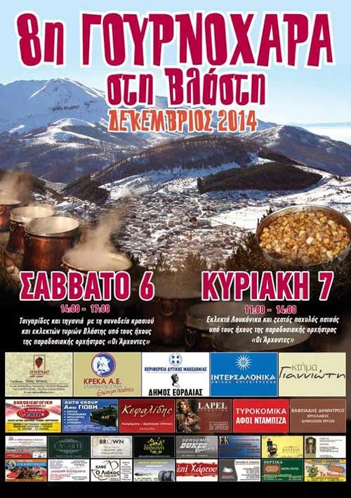 Σας προσκαλούμε στην αναβίωση του εθίμου της Γουρνοχαράς, για 8η χρονιά φέτος, που θα λάβει χώρα στην πλατεία της Βλάστης στις 6 Σάββατο και 7 Κυριακή Δεκεμβρίου 2014.