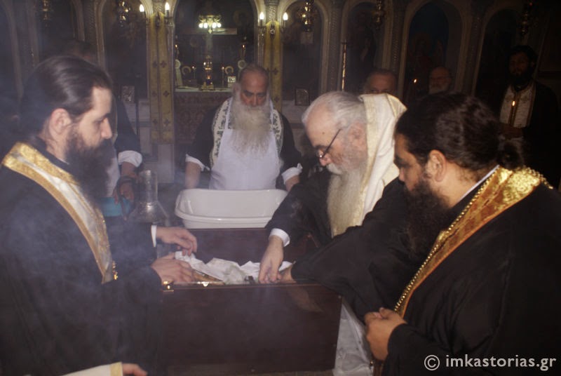 Γι’αυτό και ο Σεβασμιώτατος Μητροπολίτης μας κ. Σεραφείμ, αφού βεβαιώθηκε προηγουμένως εγγράφως, για ορισμένα συμβάντα, όρισε το εσπέρας της 27ης Νοεμβρίου 2014, να γίνει η πλύση των οστών του, τα οποία ευωδίαζαν κατά τη διάρκεια του Εσπερινού, όπως και κατά τη διάρκεια της πλύσης και σύμφωνα και με μαρτυρίες των πατέρων που συμμετείχαν.