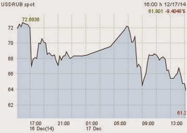 Η κεντρική τράπεζα της Ρωσίας αιφνιδίασε τις αγορές προχωρώντας το βράδυ της Δευτέρας σε μια πρωτοφανή αύξηση του βασικού της επιτοκίου στο 17% από 10,5% προηγουμένως. Ωστόσο οι πιέσεις στο ρωσικό νόμισμα επανήλθαν δριμύτερες τις επόμενες ημέρες καθώς οι αγορές εξέλαβαν την κίνηση ως αποτέλεσμα πανικού, με τον υπουργό Οικονομίας να αναρωτιέται δημόσια μήπως η κεντρική τράπεζα έπρεπε να προχωρήσει νωρίτερα στην απόφαση αυτή.