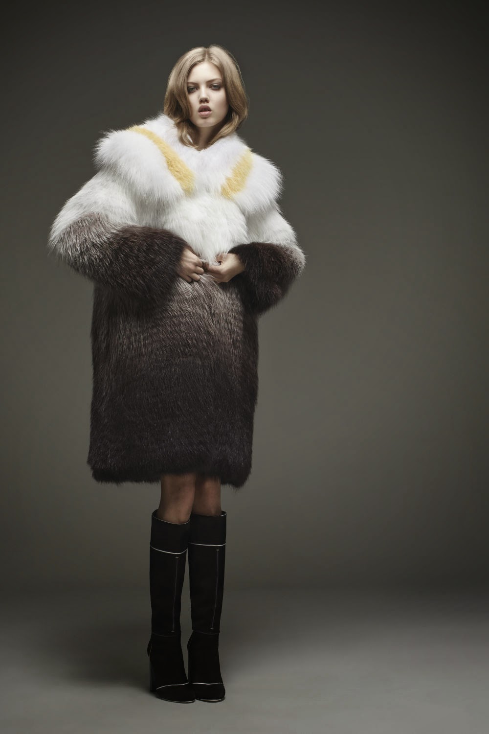Ύφασμα, δέρμα και γούνα βιζόν και αλεπούς που εναλλάσσονται παιχνιδιάρικα σε γεωμετρικά σχήματα πλασάρει ο οίκος