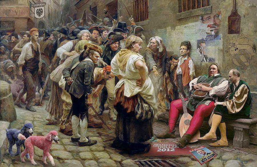 Κυκλοφορεί πολύ τελευταία η εικόνα που περιλαμβάνει μια φανταστική σκηνή με τους ευρωπαίους ηγέτες. Στην Ελλάδα συνοδεύεται με τη λεζάντα βρείτε τον Σαμαρά. Οι καλλιτέχνες προσπαθούν προφανώς να ενισχύσουν το κινζικό ρητό: Μια εικόνα χίλιες λέξεις…