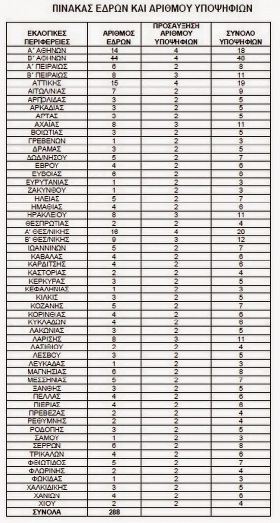 Δείτε τον πίνακα με τις έδρες ανά εκλογική περιφέρεια:
