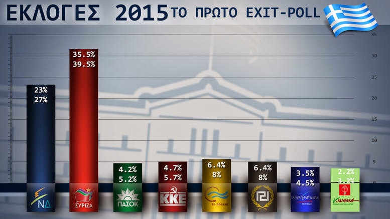Από 8,5 ως 16,5% προηγείται ο ΣΥΡΙΖΑ της Νέας Δημοκρατίας, σύμφωνα με τα αποτελέσματα του exit poll.