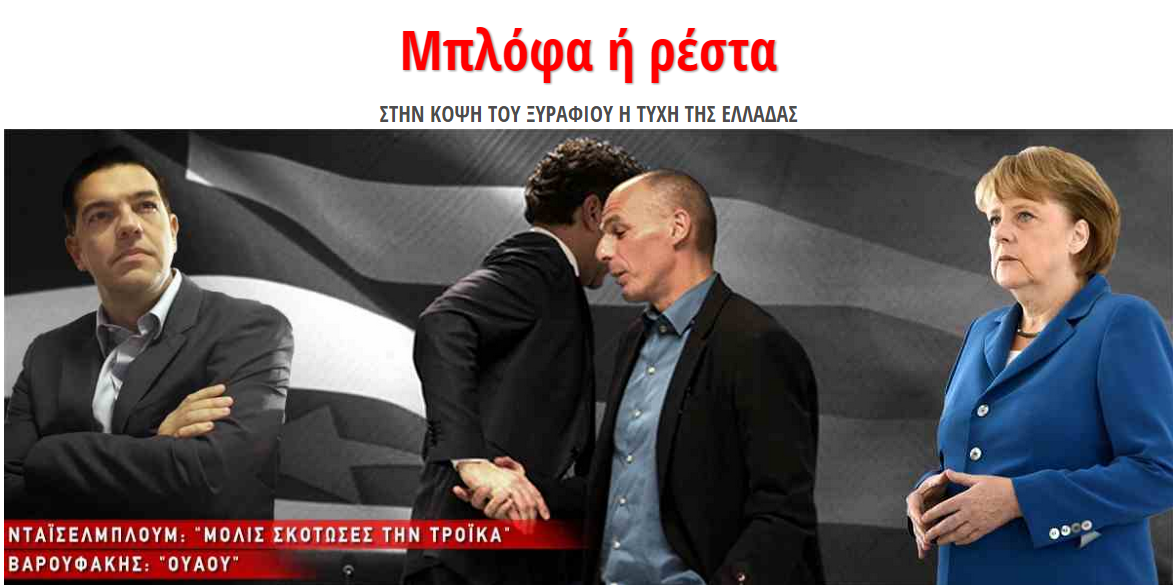 Παράλληλα, στη γερμανική έκδοση του Reuters αναφέρεται ότι «η ελληνική κυβέρνηση διαρρηγνύει τη συμφωνία, ενώ κατά τη διάρκεια των συνομιλιών διεφάνη ότι υπάρχει χάσμα απόψεων μεταξύ Αθήνας και δανειστών, με το αφεντικό του Eurogroup να απειλεί την Ελλάδα σε περίπτωση που προβεί σε μονομερείς αποφάσεις».Zougla