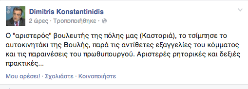 Ο “αριστερός” βουλευτής της πόλης μας (Καστοριά), το τσίμπησε το αυτοκινητάκι της Βουλής, παρά τις αντίθετες εξαγγελίες του κόμματος και τις παραινέσεις του