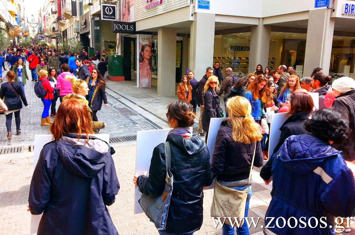 Στον πεζόδρομο της Ερμού φιλόζωοι διαδηλωτές ενημέρωναν τους περαστικούς για ποιους λόγους πρέπει να σταματήσει η εκτροφή γουνοφόρων ζώων και στην Ελλάδα και εξηγούσαν πως τα ζώα αυτά των οποίων τη γούνα φοράμε κακοποιούνται βάναυσα μέχρι θανάτου εξαιτίας της ανθρώπινης ματαιοδοξίας.