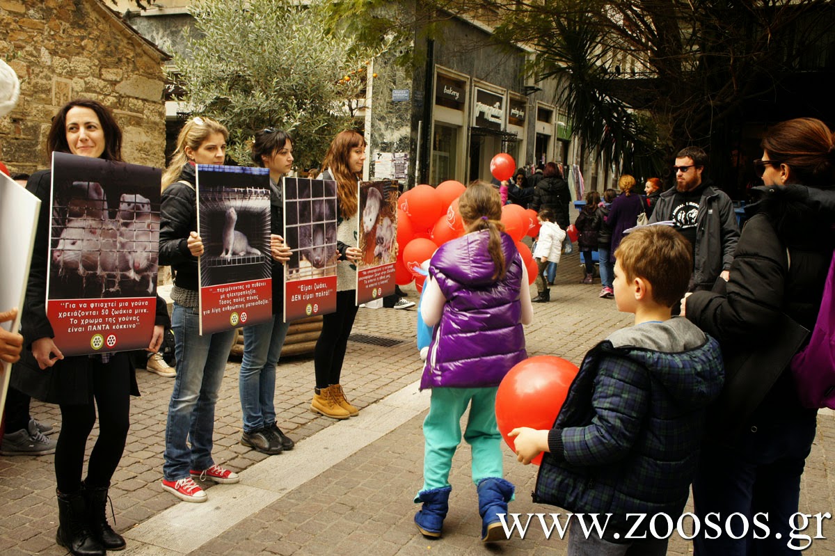 Στον πεζόδρομο της Ερμού φιλόζωοι διαδηλωτές ενημέρωναν τους περαστικούς για ποιους λόγους πρέπει να σταματήσει η εκτροφή γουνοφόρων ζώων και στην Ελλάδα και εξηγούσαν πως τα ζώα αυτά των οποίων τη γούνα φοράμε κακοποιούνται βάναυσα μέχρι θανάτου εξαιτίας της ανθρώπινης ματαιοδοξίας.