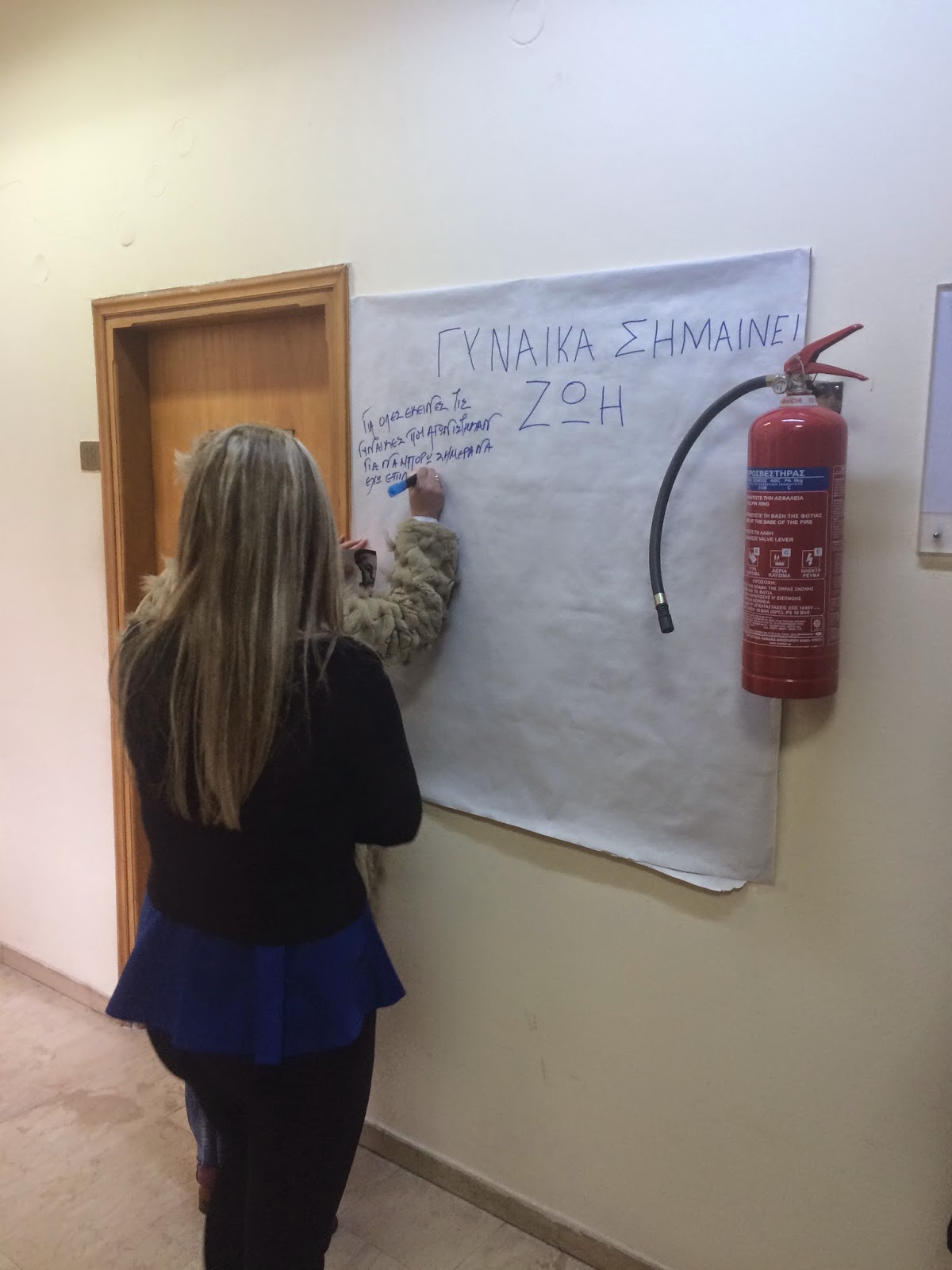 Οι συμμετέχοντες στην εκδήλωση έγραψαν στο τέλος τις ευχές τους για τη γυναίκα, σε ένα κολάζ ευχών που είχε αναρτήσει το Κέντρο Συμβουλευτικής Γυναικών, δημιουργώντας έτσι το αναμνηστικό υλικό της εκδήλωσης.
