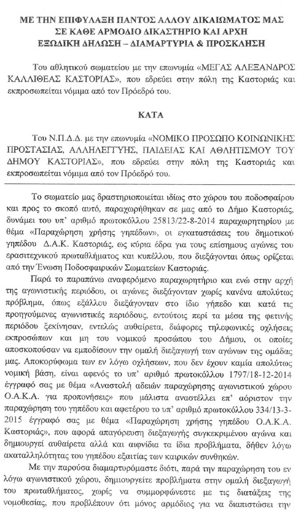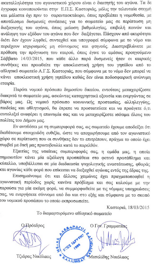 Το θεμα αποκάλυψε ο Α.Παραράς:Η κατάσταση ξεπερνά κάθε όριο, το αθλητικό σωματείο » ΜΕΓΑΣ ΑΛΕΞΑΝΔΡΟΣ ΚΑΛΛΙΘΕΑΣ ΚΑΣΤΟΡΙΑΣ » έστειλε εξώδικη διαμαρτυρία στον ΔΗΜΟ ΚΑΣΤΟΡΙΑΣ.