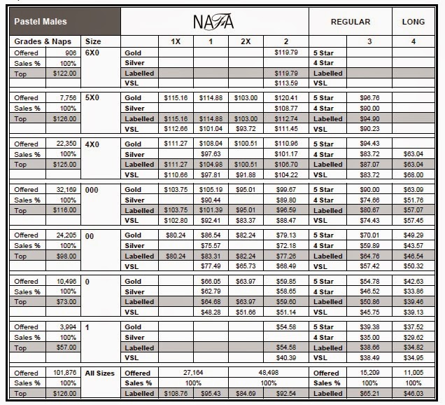 Η κατηγορία 5 Αστέρων της NAFA, δύο Pastel και Palomino αρσενικά-θηλυκά παρέμεινε σταθερή. Η καλύτερη ποιότητα των αρσενικών Silverblue ήταν επίσης σταθερή, με τα μακρύτριχα να αντιμετωπίζουν κάποιες μειώσεις των τιμών.