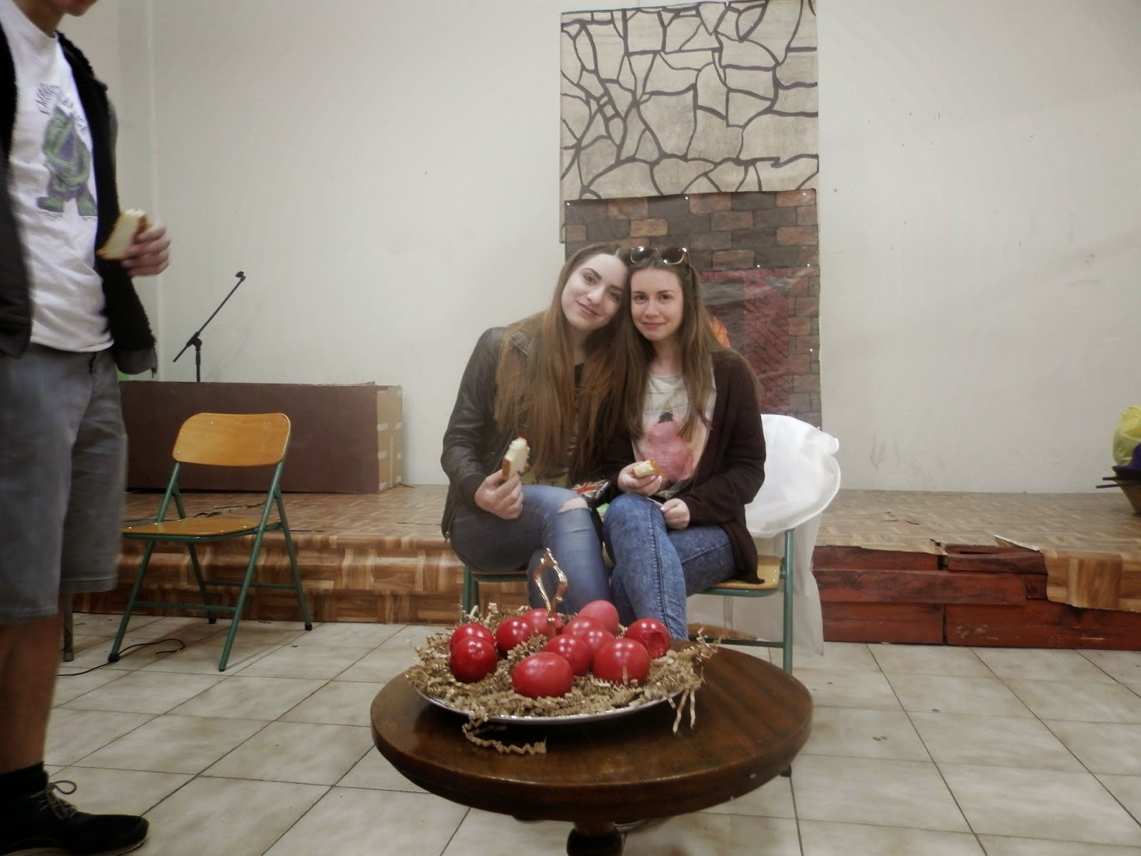 Η θεατρική ομάδα του 2ου Γενικού Λυκείου Καστοριάς για πρώτη ημέρα μετά τις διακοπές του Πάσχα, τσούγκρισαν αυγά, έφαγαν τσουρέκια και ασχολήθηκαν με τις τελευταίες εκκρεμότητες. Οι πρόβες για τη θεατρική παράσταση φθάνουν στο τέλος, τα σκηνικά, και τα κοστούμια είναι έτοιμα και ο ενθουσιασμός αλλά και η αγωνία των μαθητών μας για τη μεγάλη στιγμή μεγαλώνουν! Ας τους ευχηθούμε καλό κουράγιο και δύναμη γι αυτή την τελική ευθεία που διανύουν θεωρώντας πώς η επιτυχία είναι δεδομένη!