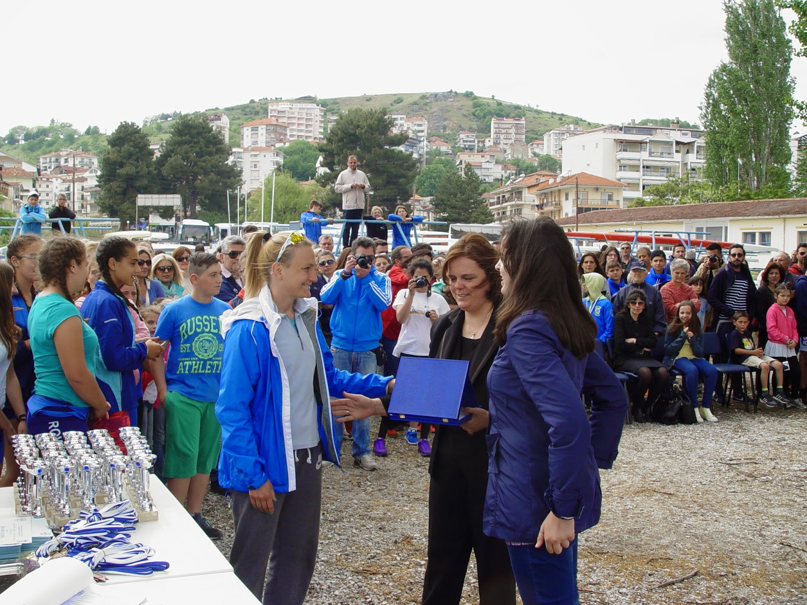 παραλαμβάνουν αναμνηστική πλακέτα από τα χέρια της Ολυμπιονίκης του Ν.Ο.Κ.
