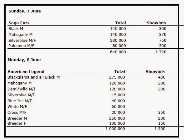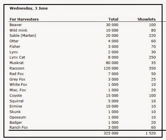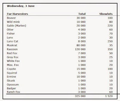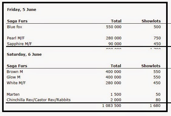 2015 είναι πλέον έτοιμη. Η προσφορά θα περιλαμβάνει 5,8 εκατομμύρια βιζόν, 744.000 αλεπούδες, 325.000 wild και 290.000 άλλα δέρματα περιλαμβάνει η προσφορά.