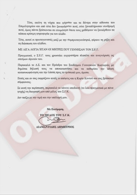 Δείτε την επιστολή που απέστειλε το μέλος του Συνδέσμου Γουνοποιών Καστοριάς κος Βασίλης Διαμαντιδης. (Το όνομα Δημήτρης στο τέλος της επιστολής είναι “τυπογραφικό” λάθος):